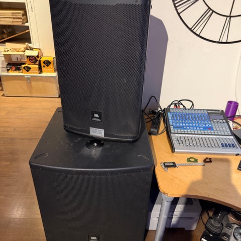 Ett aktivt PA system bestående av 2 st Yamaha DRB 12 toppar. DB 15” sub.