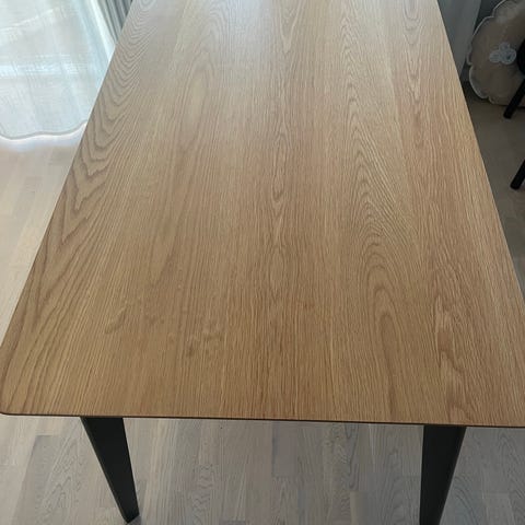 Matbord (Vilgot).MIO. 200x98x75 cm. Retroinspirerad skandinavisk design. Matbordet är förberett för att kompletteras med två tilläggsskivor à 45 cm. Matbord är i väldigt fint skick.
