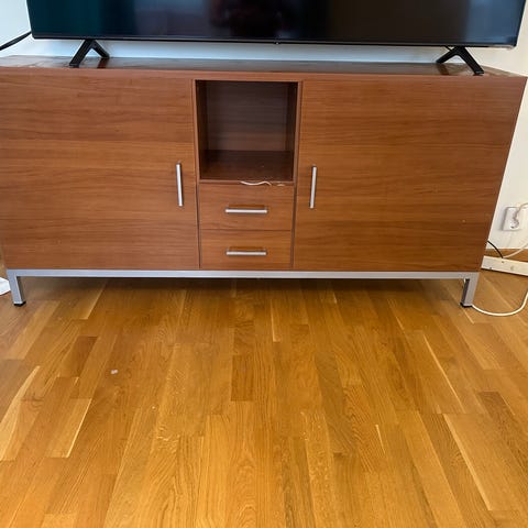 Rymlig skänk från IKEA som använts som tv-möbel. Mycket förvaring!