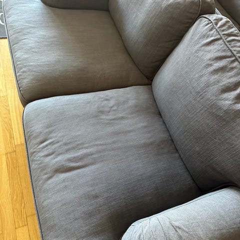 I använt skick, men helt ok! Tyget är tvättbart och diffar lite i färg på olika sidor på grund av solblekning vilket mest syns när man tvättar tyget men inte något man tänker på när det är på.