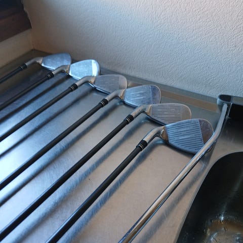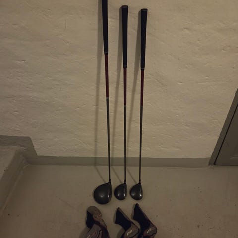 Golfklubbor hybridset med tre klubbor i blå färg samt ett antal vita golfbollar. Klubborna har metallskaft och större klubbhuvuden anpassade för lättare slag. Passar för träning eller spel på bana för spelare som vill ha ett enklare set med trä klubbor och bollar inkluderade. Klubbarna är ungefär från klubbhuvudet till slutet på skaftet så är det ca 105cm