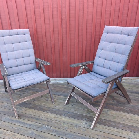 Ikea Äpplarö fällstolar i brunlaserat trä. Stolarna är hopfällbara och har ribbad sits och ryggstöd. Passar för användning inomhus eller utomhus, exempelvis på balkong, altan eller uteplats. Säljes som ett set med en brunbetsad bänk enligt bilderna.
