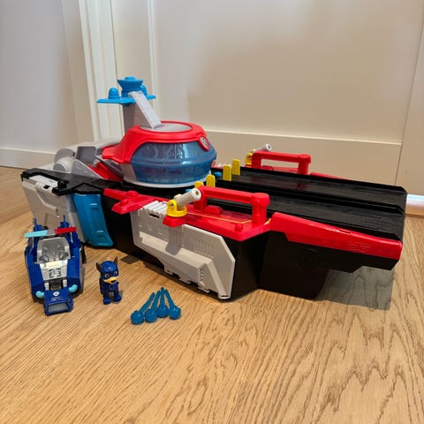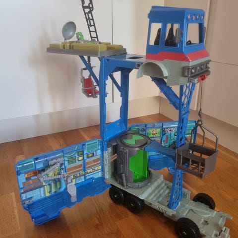 Micro Mashines lekset med rött flygplan och parkeringsgarage. Setet innehåller ett större rött flygplan med flera propellrar samt ett parkeringsgarage med flera våningar och ramp. Till leksetet hör även flera små bilar som kan användas tillsammans med garaget och flygplanet. Passar för barn som tycker om fordonslek och fantasilekar med flygplan och bilar.