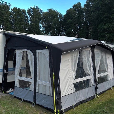 "Om vi ska välja ett tält som inte kompromissar på kvalitet, funktion komfort och innovation så är det helt klart Outwell Stone Lake 7ATC. Tre sovrumm, två stora allrum ger bra med utrymme att bo på. Genom att blanda bomull och polyester i tältduken så får tältet ett betydligt bättre inomhusklimat än andra tält då bomullen andas vid värme och isolerar vid kyla. Den rör sig dessutom mindre och är tystare. Outwells luftkanalsteknik, Rigid Air, gör tältet oerhört enkelt att resa och plocka ned och tillsammans med den kraftiga duken får man ett tält som är testat för att klara vindar på upp till 28 m/s."