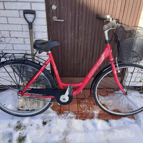 Cykeln har stått inomhus oanvänd i flera år. Efter lite kärlek i form av nya innerslangar, byte av handtag och kedjeskydd samt lite olja på kedjan bör den funka fint.