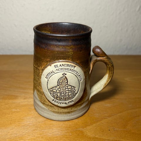 WMU World Marine University mugg i blått glas. Muggen har ett rakt cylindriskt utförande med markerat handtag. Höjden är cirka 11 cm. Framsidan är dekorerad med vit logotyp och text "WMU World Maritime University". Passar för varma och kalla drycker i kök, kontor eller som samlarobjekt. Höjd ca 11. Diameter ca 7,5 cm.