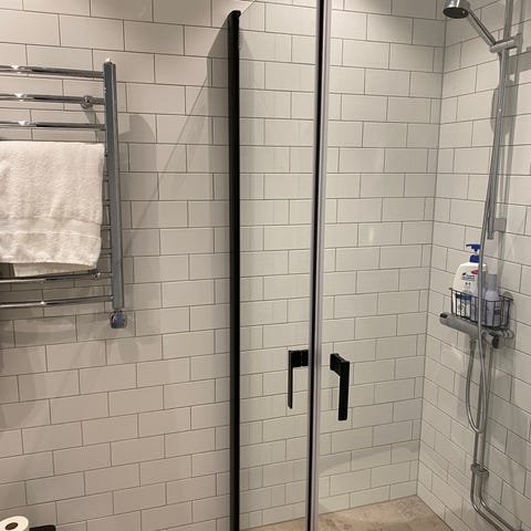 Duschvägg med kromdetaljer. 1900x1000x6mm.