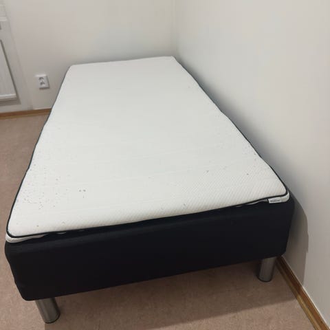 2 st Resårmadrass i 90x200 samt 2 st bäddmadrass i 90x200. Den ena madrassen har fläckar som inte går bort efter hand tvätt.