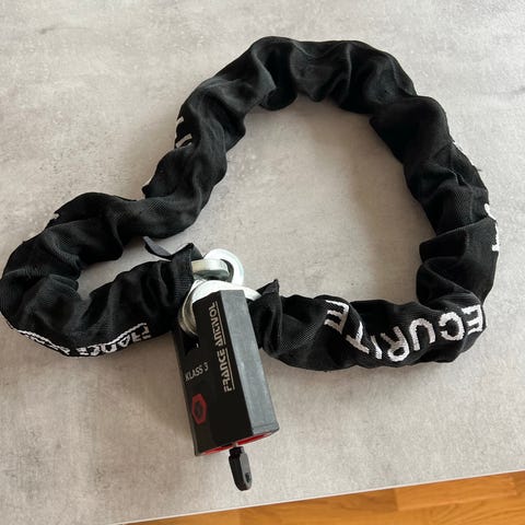 Abus kedjelås i svart färg. Låset består av en kedja med textilöverdrag och integrerat låshus. Passar för låsning av till exempel cykel, moped eller andra föremål som behöver säkras med kedja och hänglås i ett.