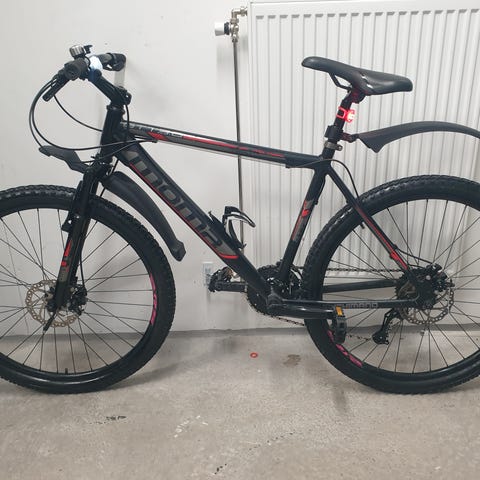 En lätt cykel av hög kvalitet med aluminiumram, 27 växlar Shimano Acera, handbroms Shimano fram och bak.