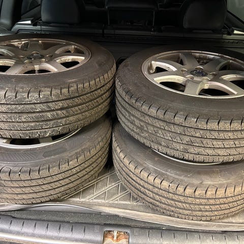 Säljer 4 kompletta hjul (däck + aluminiumfälgar) som suttit på en Volvo V70.