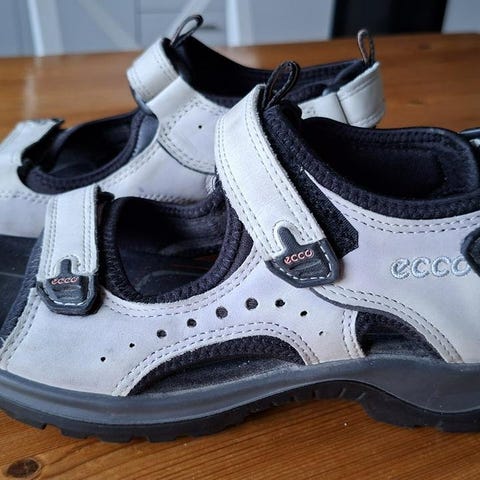 Ecco sneakers i storlek 36. Skorna har ovandel i textil och mocka i grå och lila toner med snabbsnörning framtill. Yttersulan är mönstrad för bra grepp och har kontrastdetaljer i lila. Passar som vardagssko eller för lättare promenader.