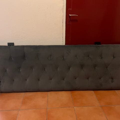 Sänggavel i fint skick, inhandlad från kungSängen. Liten nyansskillnad i färgen där sängen har stått, dvs inget som syns när man har en säng på plats. Förövrigt hel, ren och fin i tyget. Bredd 180 cm. Nypris idag 6990 kr.