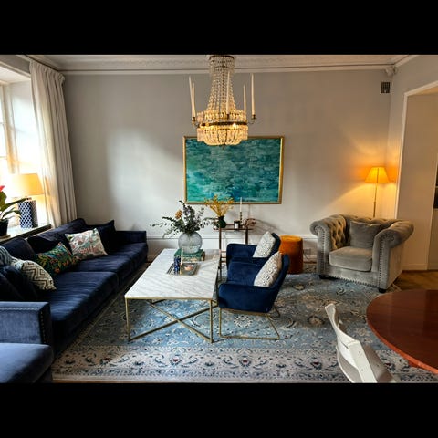 Mycket fint soffbord med kromat underrede och massiv glasskiva. Kan ta fram mått, har ej dessa exakt eftersom det står nere i källaren