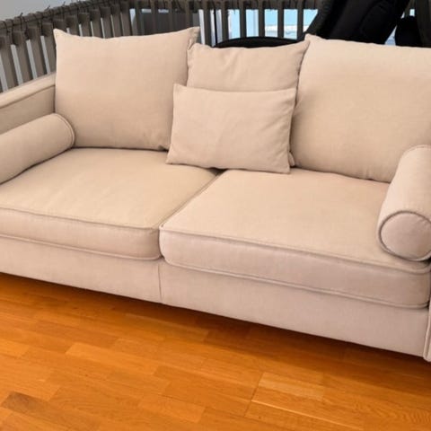 Säljes väldigt fin Sweef Björnen bäddsoffa i fint skick i färgen Sand. Soffan tillkommer med 6 tillhörande kuddar i olika storlekar.