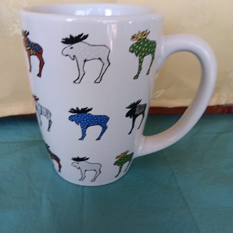 Stor vit mugg med Barcelonamotiv på.