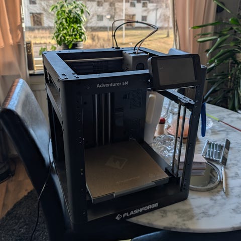 Börja 3D-skriva! Nästan oanvänd 3D-skrivare från Flashforge säljes pga byte till skrivare för flerfärg. Köpt i juni 25 hos Clas Ohlsson och garanti finns kvar. Skriver ut snyggt och enkelt. Skriver ut Perfekt för den som vill börja lära sig skriva ut i 3D. Lättanvänd, kompakt och med imponerande precision på 0,1 mm som minsta lagertjocklek. En Plug N Play-printer för både erfarna användare och för nybörjare som enkelt vill komma igång med 3D-utskrifter.