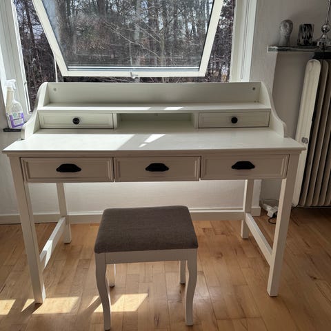 Skrivbord i ok skick. OBS! stolen ingår inte.