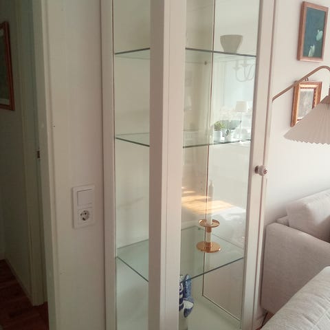 Vitrinskåp med belysning, svart från IKEA. Ca 2 år gammalt och i skick som nytt. Bredd: 35 cm. Djup: 32 cm. Höjd: 151 cm. Säljes på grund av flytt. Hämtas på plats och betalas med Swish.