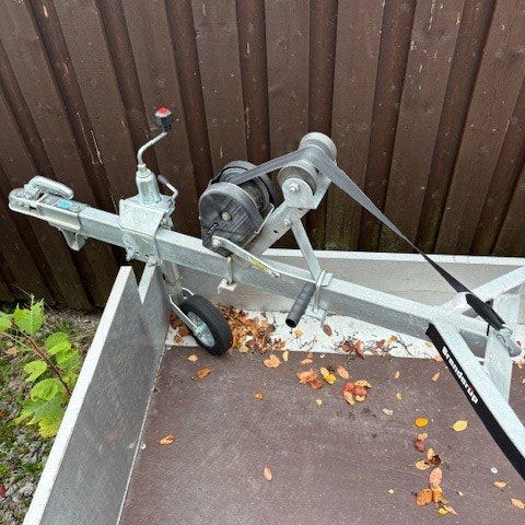 Båttrailer BÅTVAGN BV-2000 extrautrustad med uppkörningsvagga. Trailer å vagga är köpt ny september 2025.