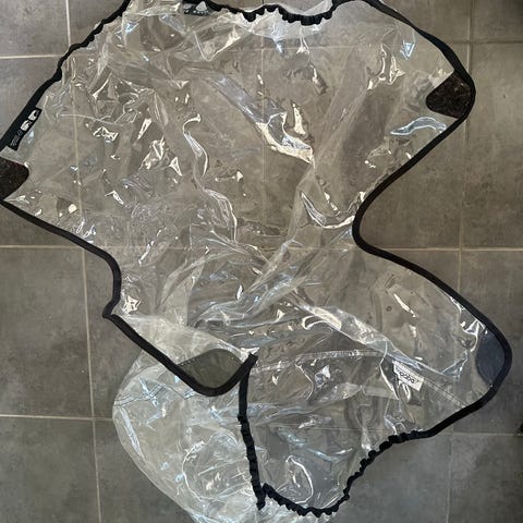 Bugaboo regnskydd till barnvagn. Transparent plastöverdrag som skyddar barnet mot regn och vind. Passar Bugaboo Buffalo-barnvagn. Utrustad med öppning framtill för enkel åtkomst till barnet samt fästen för att hålla skyddet på plats över vagnen.