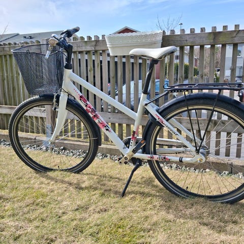 Säljer en damcykel i rödvita färg av märket PEAK model PT Stewart, tum 28 med 24 Shimano växlar ramstorlek 51 cm. Aluminium ram, frambroms, bakbroms samt pakethållare. En bra och väldigt välvårdad cykel som passar till våran/sommaren som kommer.