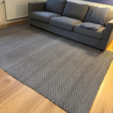 Säljer en fin ullmatta i svart och vitt som passar de flesta hem. Storlek 2x3 meter. Inköpt på More i Varberg för ca fem år sedan. Nu till ett väldigt bra pris.