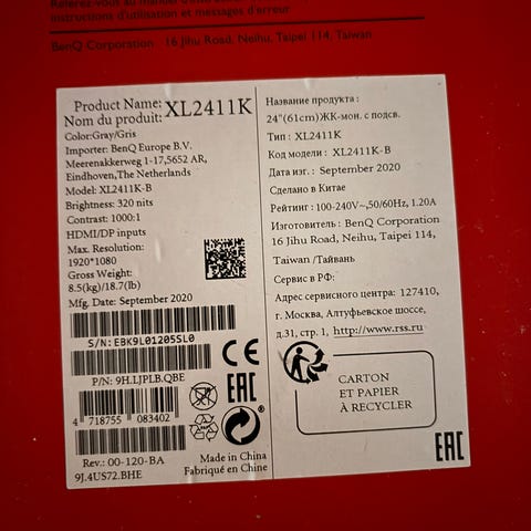 BenQ XL2546k 240hz 24.5 tum DyAc