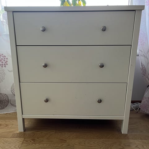 Två byrå i vit lack från Mio. I använd bra skick. En av dem har en liten reva på ovansida.