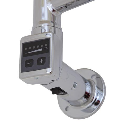 Väggmonterad modell med fyra vertikala rör i minimalistisk design. Passar för torkning och uppvärmning av handdukar i badrum eller tvättstuga.