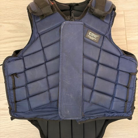 CRW Jupiter säkerhetsväst för barn i marinblå färg. Modellen är märkt med storlek Child M. Västen är avsedd för ridning och är BETA 2018 Level 3-godkänd enligt EN13158:2018. Justerbara axel- och midjeremmar gör att passformen kan anpassas efter barnet. Lämplig som skydd vid ridning och annan hästrelaterad aktivitet där extra kroppsskydd behövs.