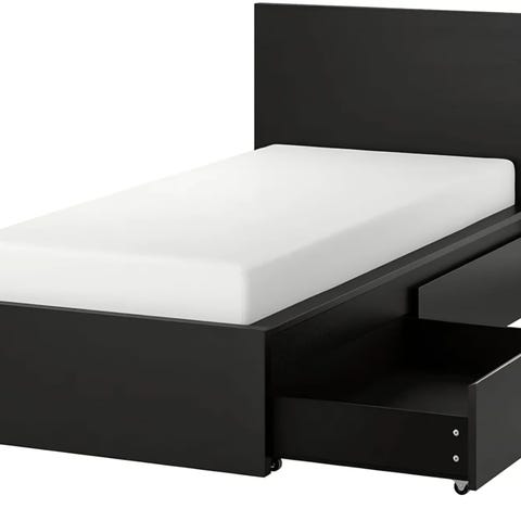IKEA 90x200cm säng, bäddmadrass & ekben