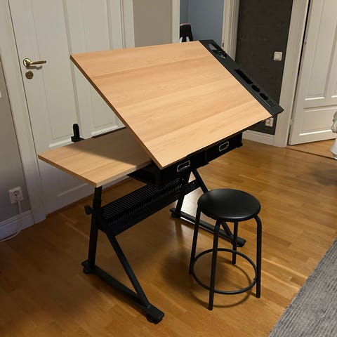 Fantastiskt ritbord, stor ritningshurts, stor skärmaskin för papper, div. kontor