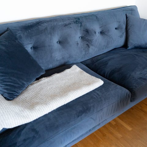 Sammetssoffa med fotpall