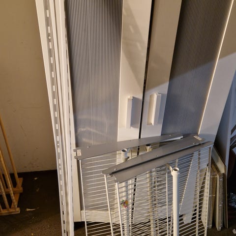 Säljer 5st långa Elfa-hyllplan. Varje hyllplan består av två delar som syns på bilden som kopplas ihop. Det går också att använda de två delarna separat.