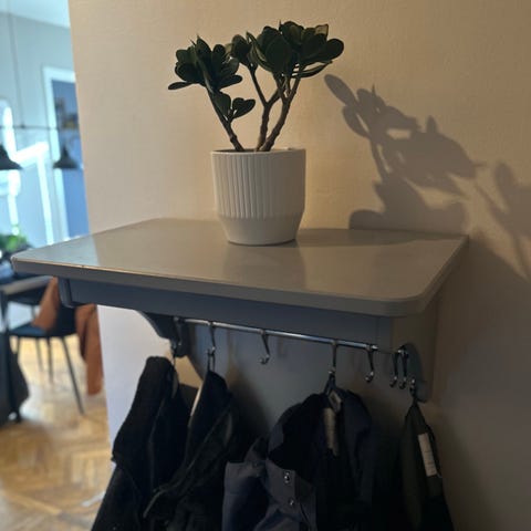 En hylla med bra djup så det får plats mycket saker. Köpt för 140kr