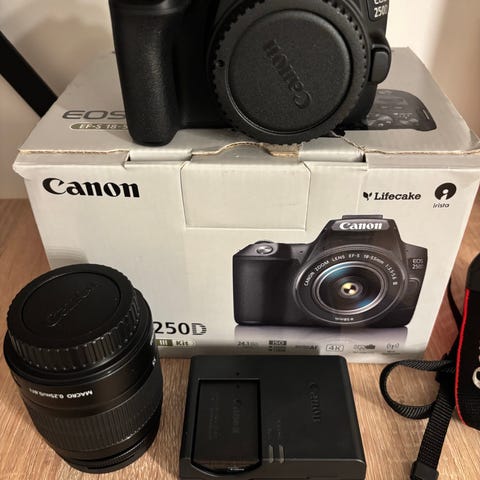 Objektiv medföljande på bilderna är ett Canon-zoomobjektiv med frontlock. Passar för allmän fotografering, resor och vardagsbilder samt mer avancerad fotoanvändning där man vill kunna byta objektiv och använda manuella inställningar.
