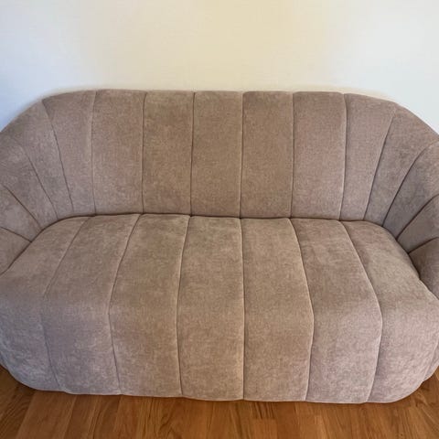 En u-soffa med 2 schäslonger som är mycket skön att sitta i. Tvättbar klädsel, både ryggkuddar och sittdynor. 295 cm lång. Endast 2 år gammal. Ej nedsutten.