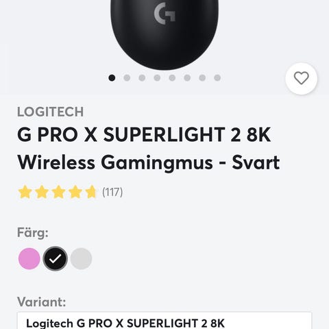 Logitech G Pro X Superlight datormus i svart utförande. Trådlös gamingmus med USB-mottagare och möjlighet till laddning via kabel. Undersidan har utbytbara glidytor/skates och rund viktmodul. Medföljande tillbehör enligt bild inkluderar USB-dongel, adapter/förlängare, kabel, extra bottenplatta samt originalförpackning med innerkartong och dokumentation. Passar för användning med dator för spel och allmänt bruk.