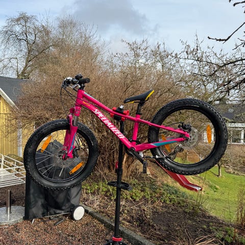 Specialized barncykel med 20" hjul. Cykeln har rosa ram med dämpad framgaffel och breda däck som ger bra grepp på olika underlag. Utrustad med växlar bak, handbromsar och reflexer på hjul. Passar barn som växt ur mindre hjulstorlek och behöver en cykel för vardagskörning och enklare turer på grus- och skogsvägar.