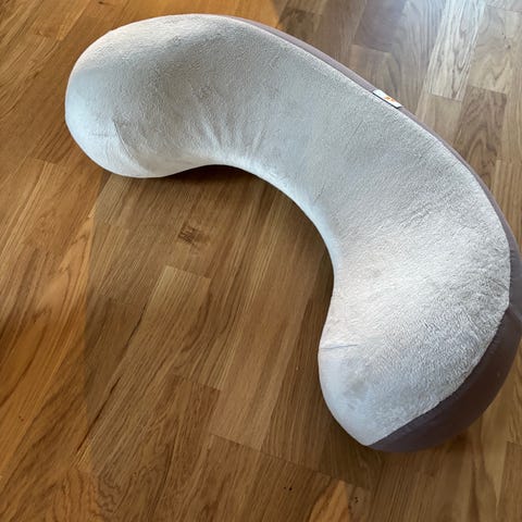 Ergobaby Natural Curve amningskudde i grått. Kudden är formad för att ge stöd vid amning och flaskmatning genom att placera barnet i en stabil och upphöjd position. Yttermaterialet är i ett textilöverdrag och kudden har ett handtag för enkel förflyttning. Passar för användning vid amning eller matning av spädbarn i hemmet eller på resa.