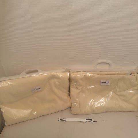Endast använd en gång, för att utvärdera storlek, i någon timme med kuddskydd + örngott (i rök-, djur- och doftfritt hem).