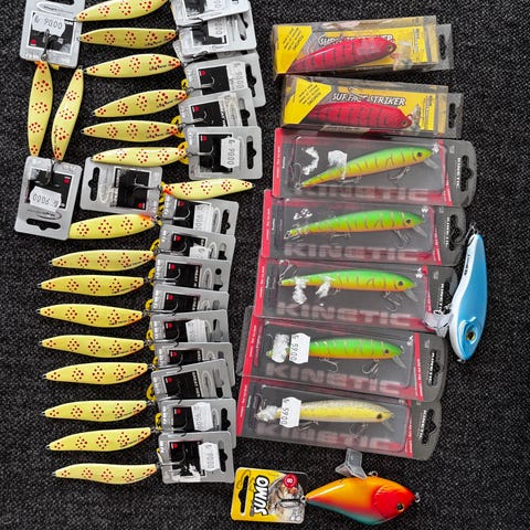 Diverse fiskedrag för fiske efter abborre. Finns blandat med jiggar och några hårdheten. Allt är oanvänt