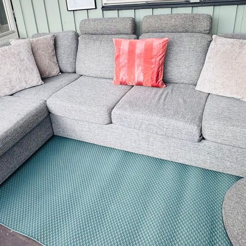 Hörnsoffa i fint skick. Mörkgrå. Några mindre skavanker men sammantaget är soffan i gott skick. Inköpt under 2021.