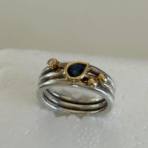 Förgylld ring i silver 925 (stämpel finns), förgylld (som tinat bort lite, se bilder). Fint skick. Väger ca 4g. Diameter ca 17 mm. Tjocklek ca 3.5 mm.