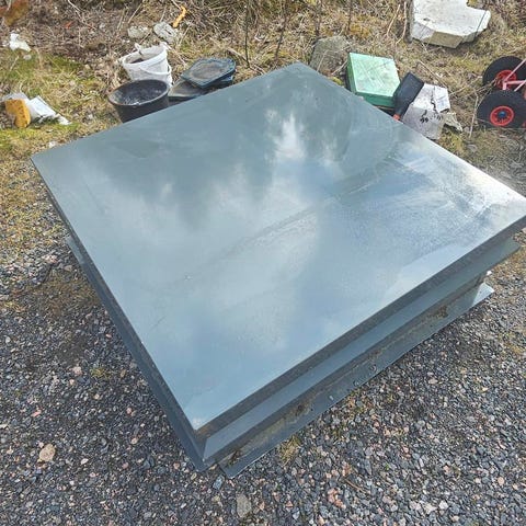 Skorstenshuv för skorstenar med yttermått omkring 85x85 centimeter. Satt endast uppe tre år innan vi murade om skorstenen, vilket gör att den inte längre passar. Endast två mindre gjorda för två kanaler.