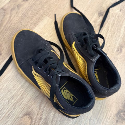 Vans barnskor i storlek 32 för unisex. Modellen är svarta sneakers med snörning och mellanhögt skaft. Skorna har den klassiska vita Vans-sidan och vit yttersula. Ovandelen är i textil och syntet med brun detalj vid hälen och mönstrat foder invändigt. Passar till vardagsbruk för barn.