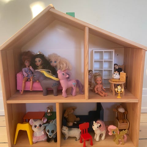 My Little Pony dockhus i plast i rosa färg. Huset består av flera sektioner med öppningsbara delar och detaljerade fönster. En del innehåller inredning som barnsäng, och en annan del har en pool/terrass med trappa och dekorationer. Dockhuset är avsett för lek med My Little Pony-figurer eller andra småfigurer och passar för inomhuslek. Konstruktionen är lätt och kan flyttas vid behov.