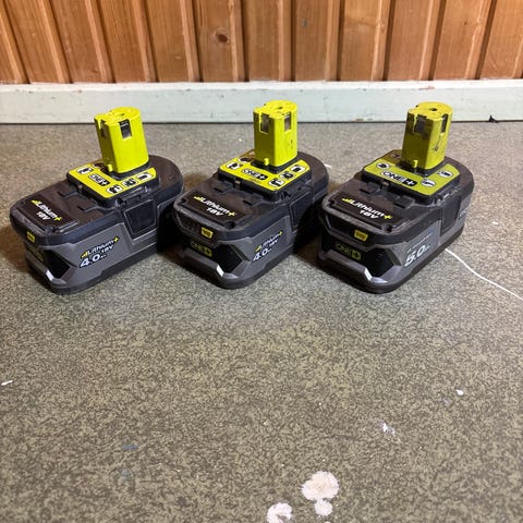 Ryobi verktygspaket med slipmaskin, kompressor, batterier och väska