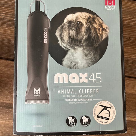 Wahl klippmaskin med tillbehör. Uppsättningen innehåller en elektrisk klippmaskin, laddare/nätadapter, flera klippkammar, kam, flera saxar samt en nagel-/tångliknande klippare. Bruksanvisning och originalförpackning till klippmaskinen ingår enligt bild. Passar för klippning och trimning av hår eller päls beroende på modellens specifikationer.